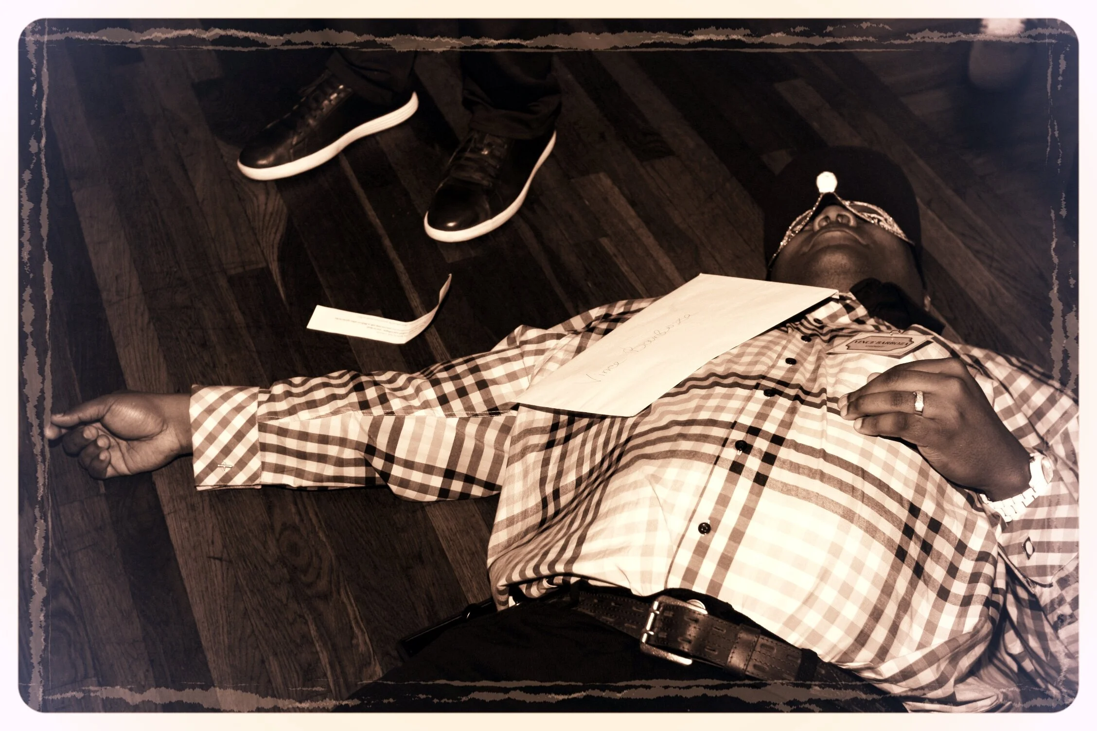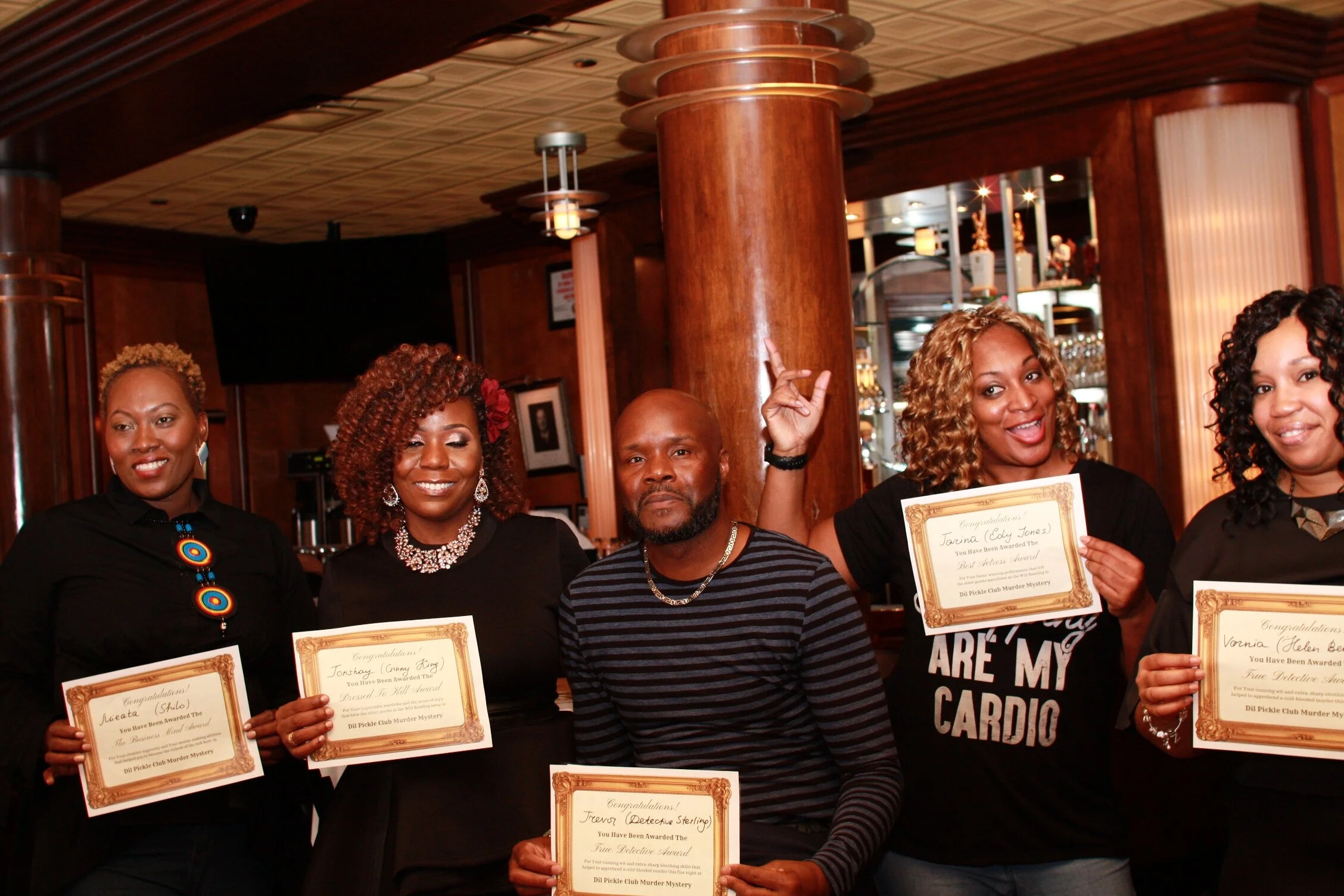 Each guest had some information, secrets, piece of evidence, and an opportunity to make money. Helen Benson and Detective Sterling were leading the murder investigation and were taking mug shots of the main suspects. At the end of the game all guests got a chance to review the evidence, suspect board, and to nominate the main suspect, as well as to vote for The Best Actor/Actress, and The Best Dressed among the guests.